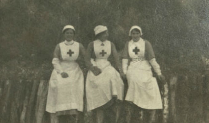 Angois did not train as a nurse, but she joined the British Red Cross Voluntary Aid Detachment, Nottingham 40 in 1913. She learnt first aid and home nursing, as well as taking cookery classes. These volunteers became known as VADs and had to pass examinations to become certificated. It is likely that Angois’ training took place at Welbeck Abbey in Sherwood Forest. This was the 6th Duke of Portland and Duchess Winifred’s home. As soon as war broke out they had established an auxiliary Red Cross hospital here. You can see the Duchess conducting a Red Cross Inspection on 31 July 1914 in the scrapbook. On the same page we find a picture of a number of Voluntary Aid Detachments, gathered in the Abbey’s huge Indoor Riding House.