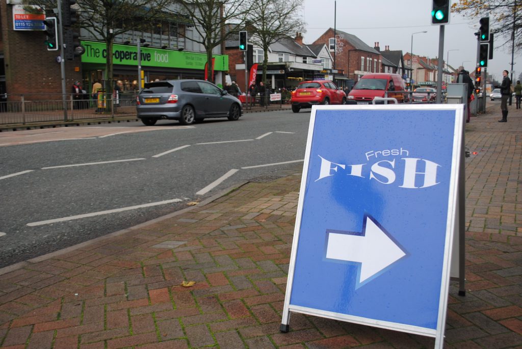 Mapperley had not had a fishmonger since Mapperley Fisheries closed in the late 1980’s. A gentleman’s agreement between Vince and the proprietor of Bombay Brasserie gave him a pitch to trade from.