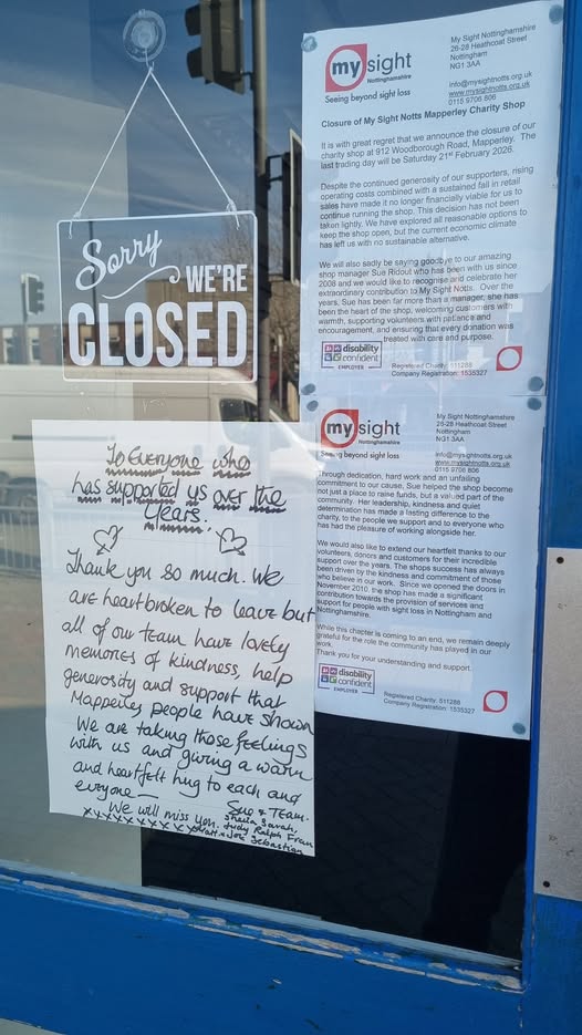 It is with great regret that we announce the closure of our charity shop at 912 Woodborough Road, Mapperley. The last trading day will be Saturday 21st February 2026. Despite the continued generosity of our supporters, rising operating costs combined with a sustained fall in retail sales have made it no longer financially viable for us to continue running the shop. This decision has not been taken lightly. We have explored all reasonable options to keep the shop open, but the current economic climate has left us with no sustainable alternative.